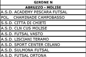 Il girone N – Academy Pescara, Chaminade Campobasso, Città di Chieti, Laborvetro Cln Cus Molise, Futsal Vasto, Lisciani Teramo, Sport Center Celano, Sulmona Futsal, Futsal Ortona.