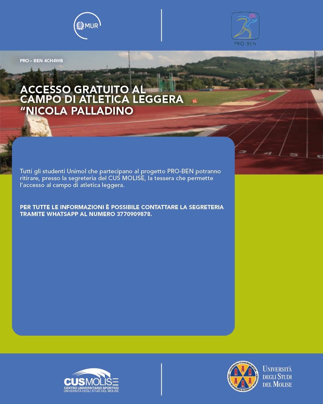 👋 Benvenuto al CUS Molise! Vuoi fare sport con noi 💪? Richiedi informazioni su attività dei settori giovanili, corsi fitness e iscrizioni.